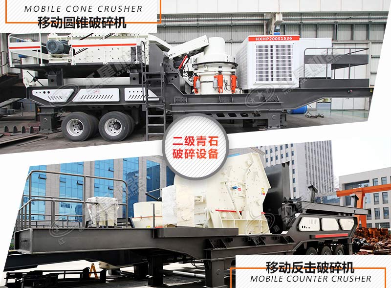 二級破碎設(shè)備-移動反擊破碎機、移動圓錐破碎機