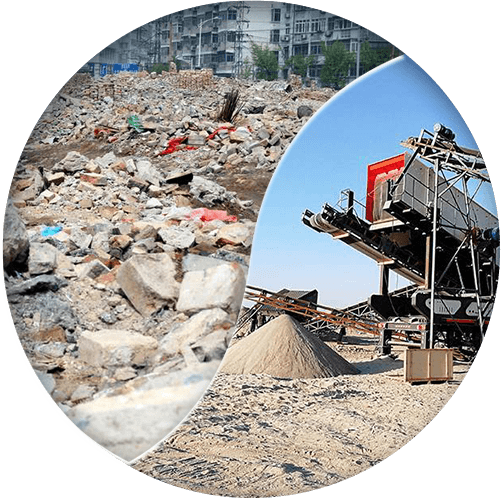 公園土基,建筑再生骨料,路墊骨料,建筑垃圾再生磚,混凝土,以及一些高附加值的建筑產(chǎn)品,移動破碎機認(rèn)準(zhǔn)紅星。